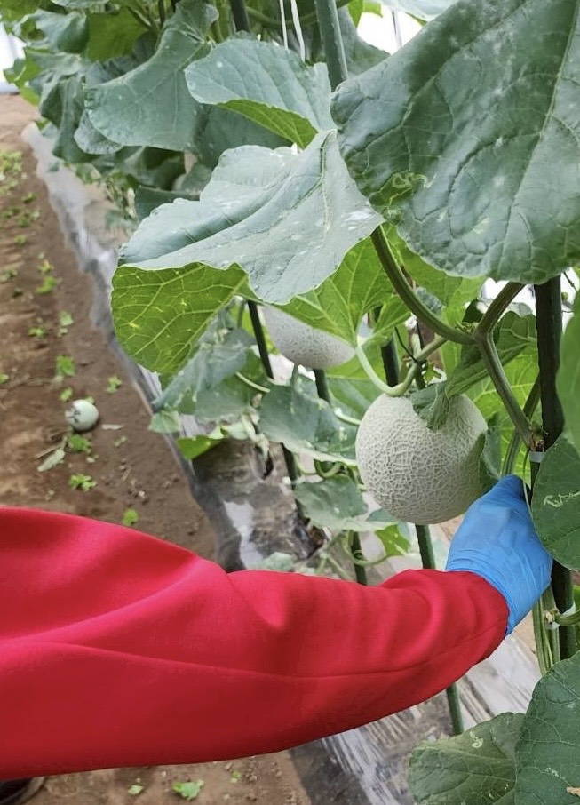 現在、模擬会社ではメロンやジャガイモ、ハツカダイコン、ネギの栽培を行っています。