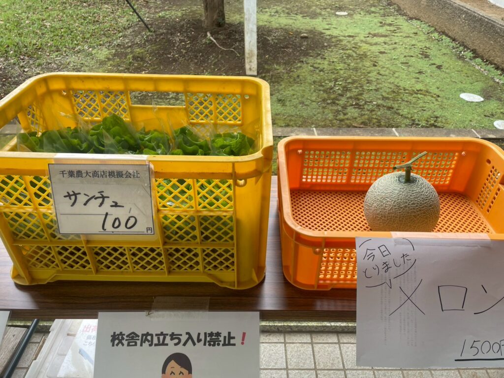 本日(10月29日)のラインナップは、メロン、サンチュ(カキチシャ)です。校舎玄関前にて販売しています。